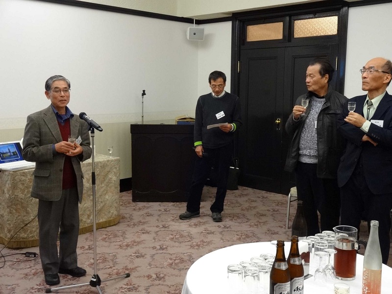 講演終了後は、松本幹事の進行で、学生歌斉唱、集合写真撮影、休憩の後、懇親会に入り、飲食しながらの近況報告に一同大いに盛り上がりました。